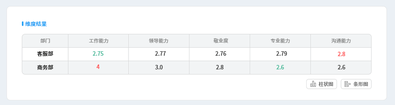 !我們做360度評(píng)估問卷主要是想了解每個(gè)部門的工作情況,把按部門分析的結(jié)果傳遞給部門領(lǐng)導(dǎo),讓他明白本部門有哪些地方需要改善。所以希望最終導(dǎo)出來的分析結(jié)果就直接是帶部門分析報(bào)告的。